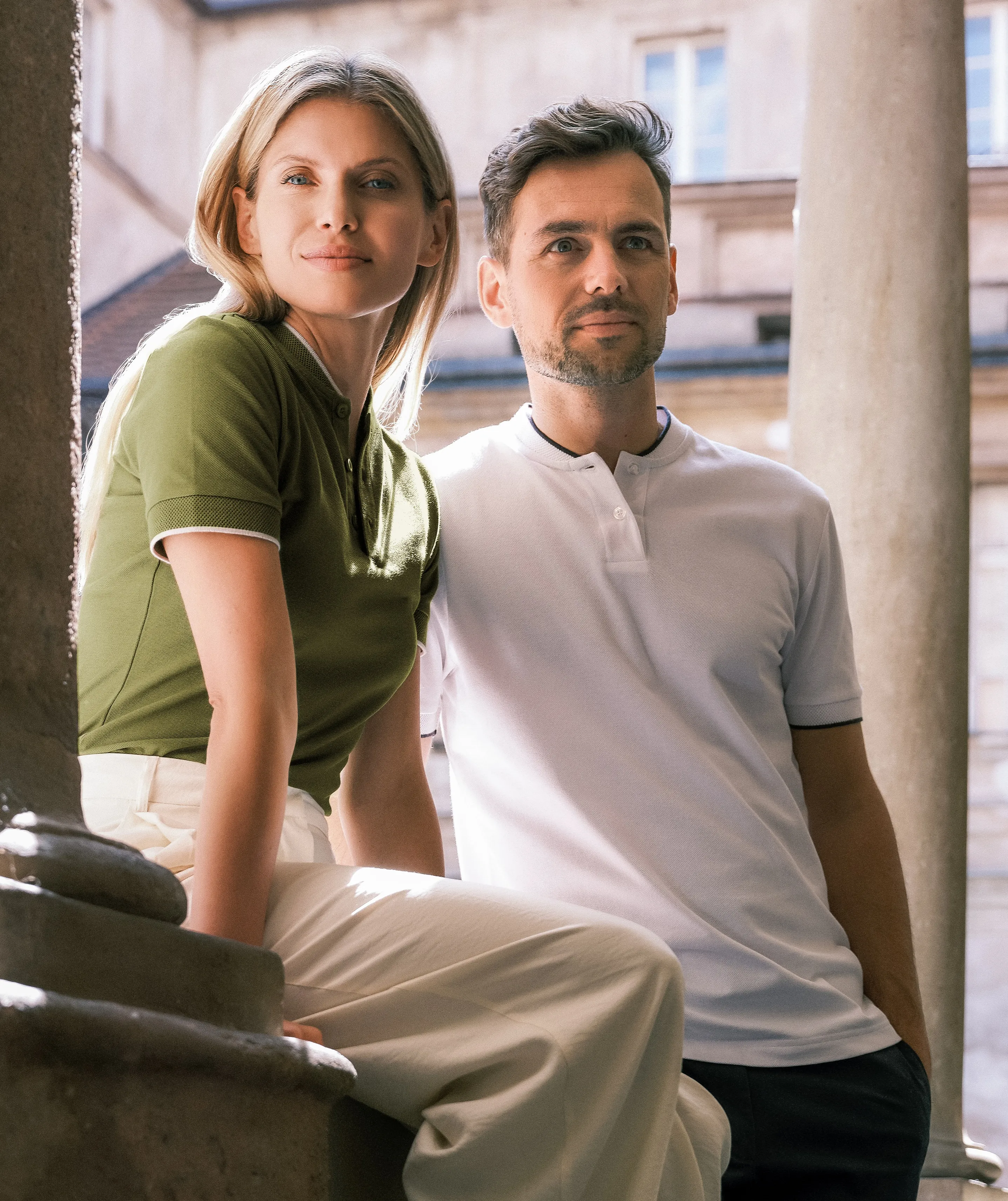 Pár sorozat - nők és férfiak ruházata azonos stílusban és színekben.
